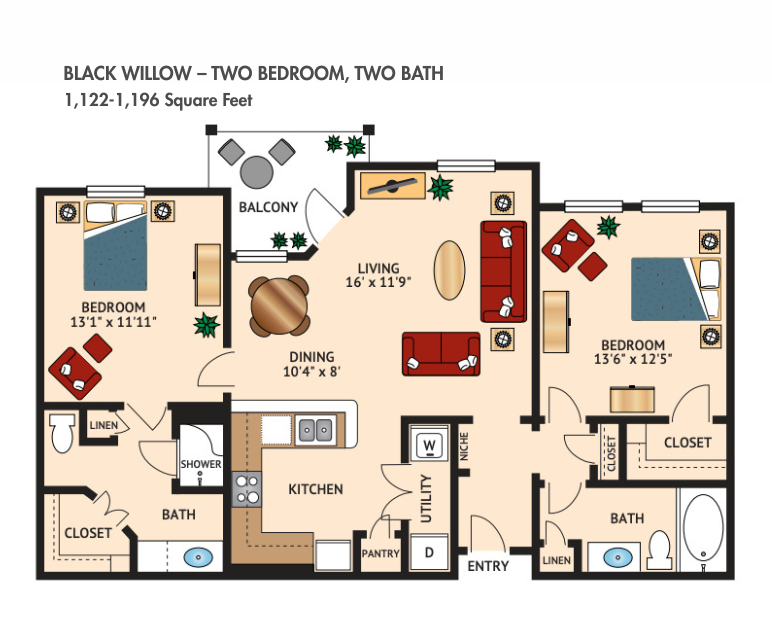 Two Bedroom | Two Bathroom - 1,122-1,196 Sq. Ft.