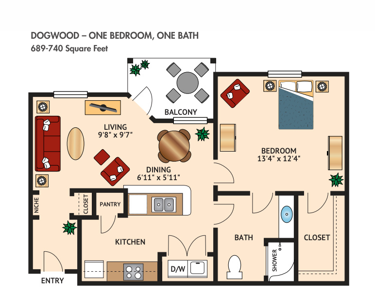 One Bedroom | One Bathroom - 760-802 Sq. Ft.